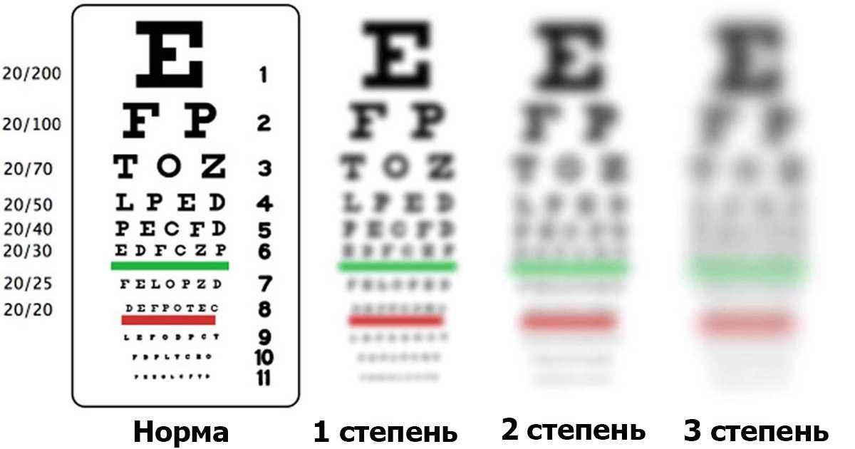 Прежде чем переходить к подробному разбору причин нарушения зрения, стоит узнать о степенях развития: