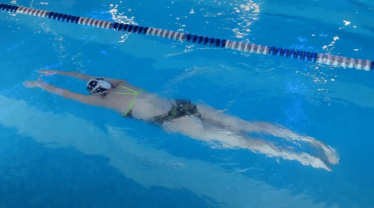 - При гребке и выходе над поверхностью лицо поднимается над поверхностью воды.