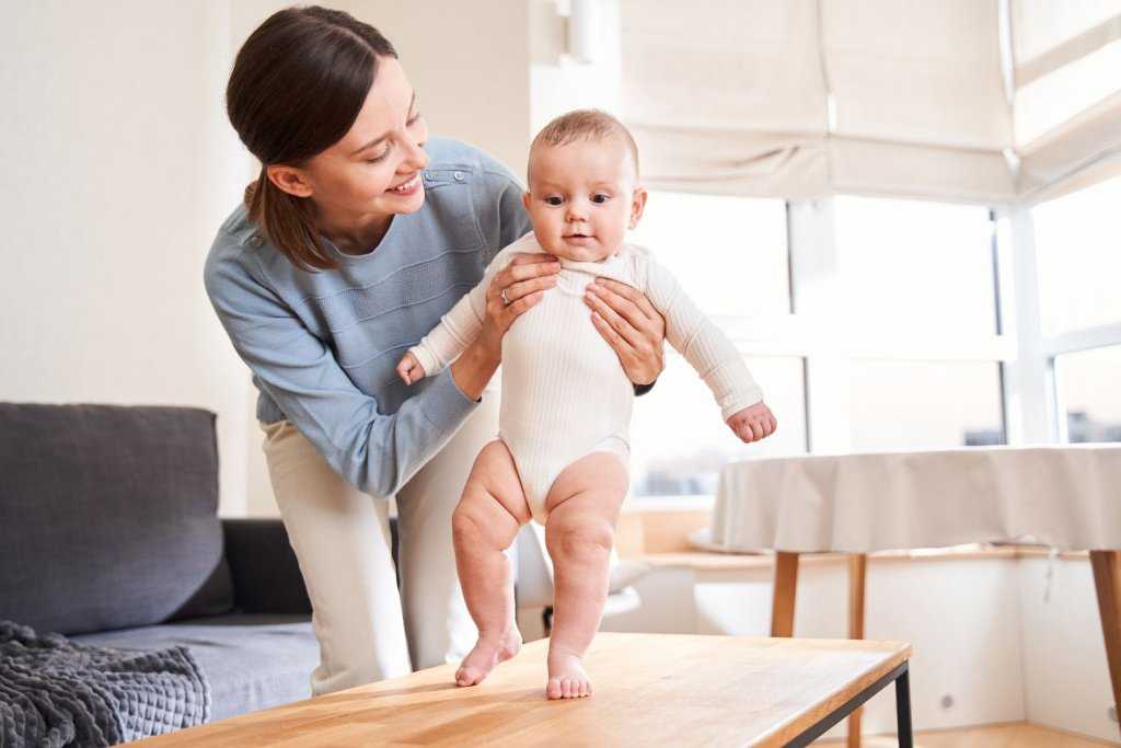 Уже в возрасте нескольких месяцев с ребенком можно делать упражнения для укрепления всех групп мышц. Любая физическая деятельность: плавание, переползание через препятствия, подтягивания с помощью рук взрослого, укрепит моторные навыки и мышечный корсет. К упражнениям, приближающимся первые шаги относятся: