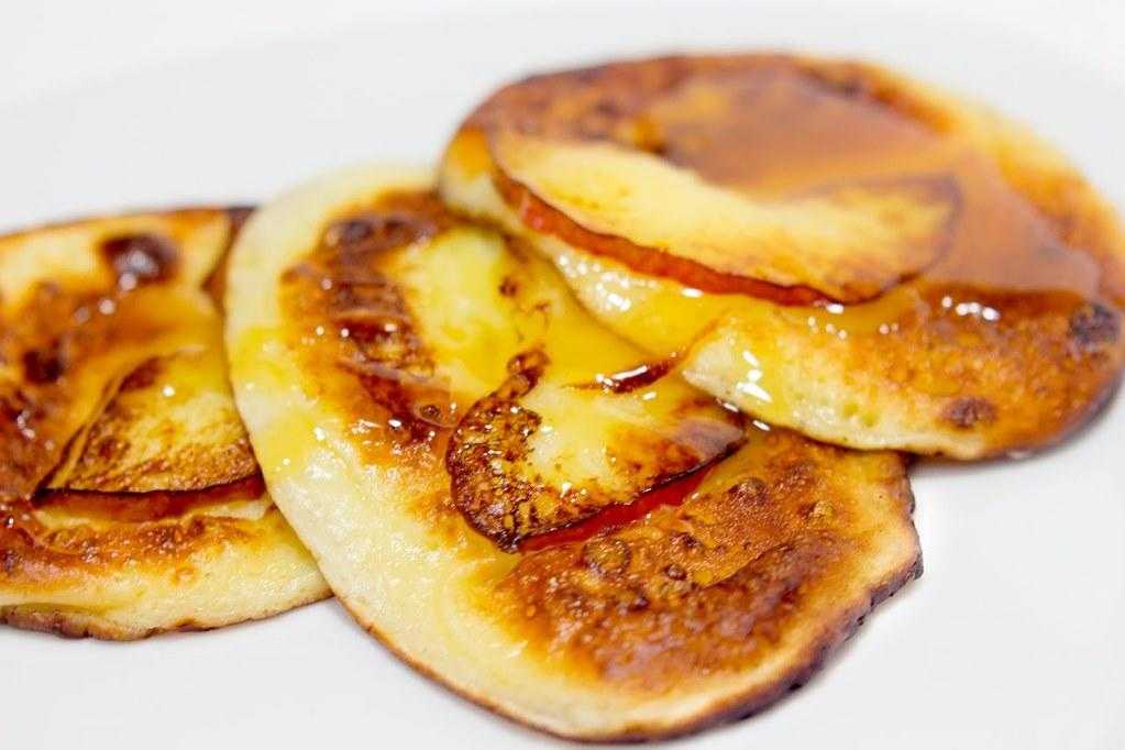 Как приготовить оладьи из теста на молоке с ломтиками яблок
