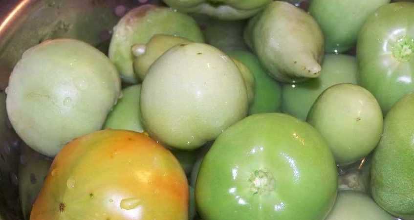 Овощи собирают для этого соуса в любой степени зрелости. Подойдут даже едва набравшие округлость завязи. Главное – собрать достаточное количество. При этом уже созревшие красные помидоры вполне можно добавлять в любой пропорции к зеленым – такой соус-микс только приобретет дополнительные яркие краски, станет аппетитнее.