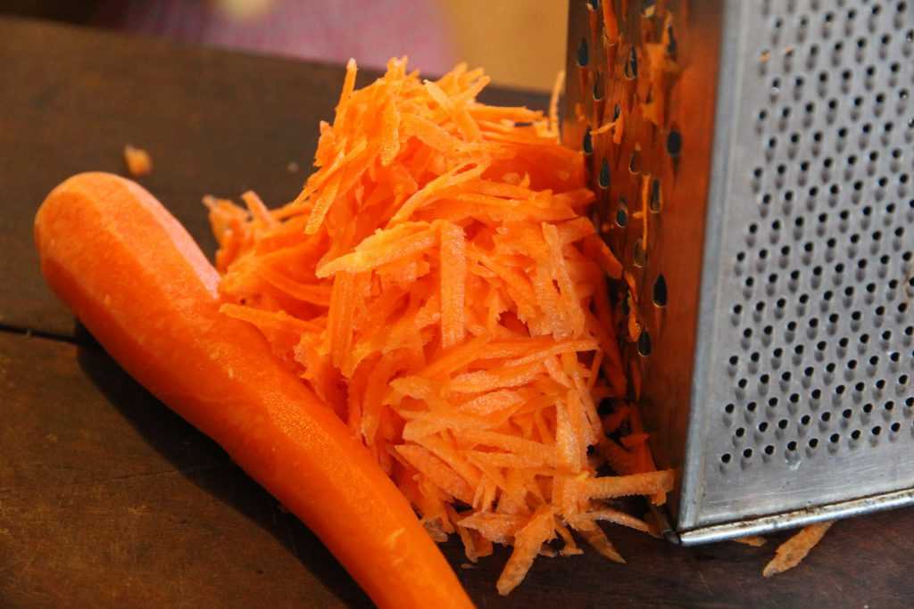 Шаг 10. Морковь очистить, ополоснуть холодной водой, натереть на средней терке.