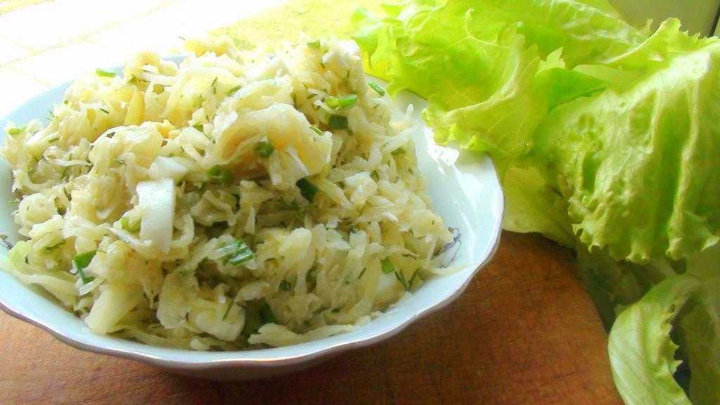 Чтобы сделать начинку, я беру капусту и удаляю с нее верхние листочки. Далее я мелко рублю ее (когда лень, шинкую на специальной терке). Рубленую капусту я выкладываю в разогретый глубокий сотейник, а затем вливаю туда же небольшое количество очищенной воды и начинаю тушить массу до состояния полуготовности. В финале приготовления капусты я перчу ее, солю, перемешиваю и убираю с плиты.