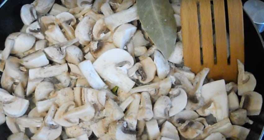 - Огонь средний. Теперь можно добавить кусочки грибов.