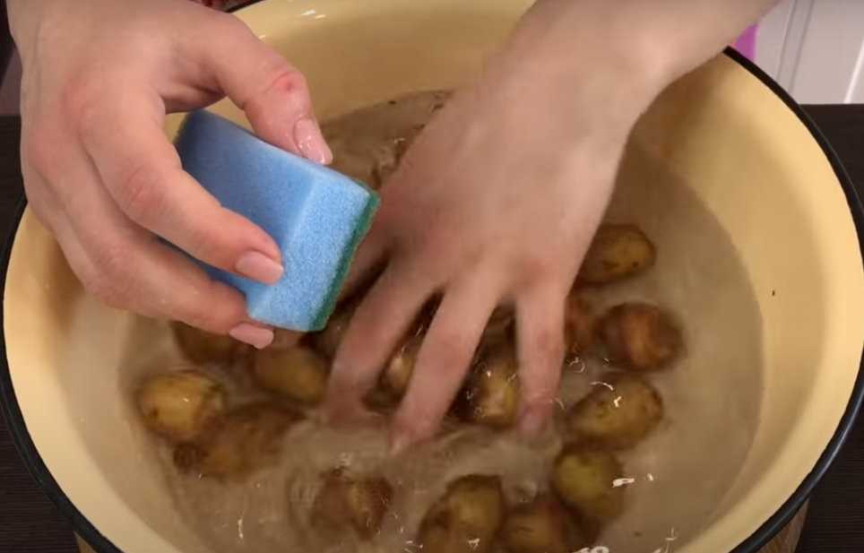 1. Сначала нужно тщательно помыть клубни под краном, и почистить ее от кожуры.