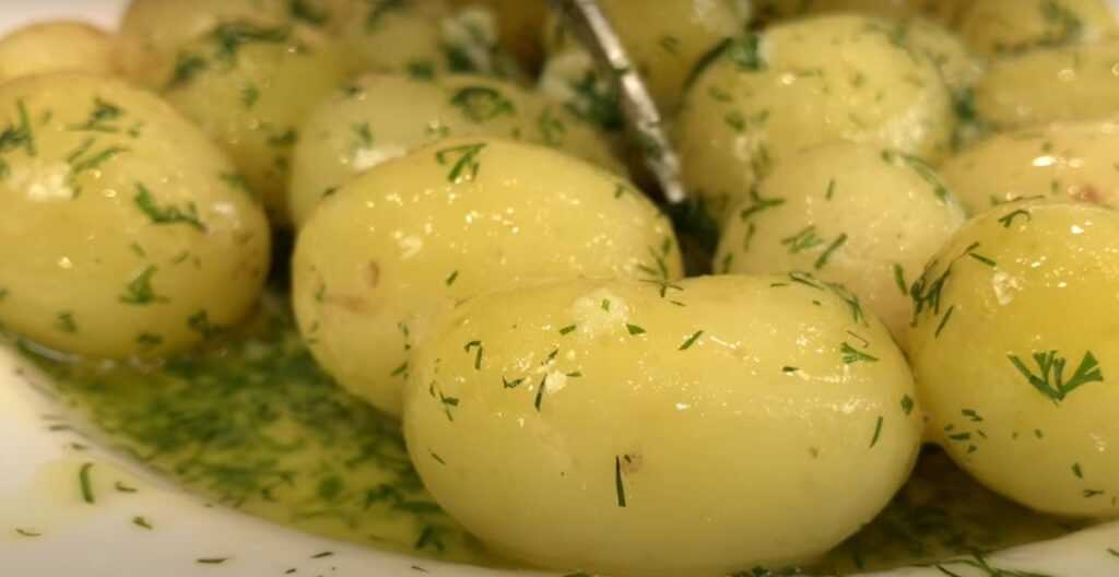 Отварной молодой картофель с базиликом