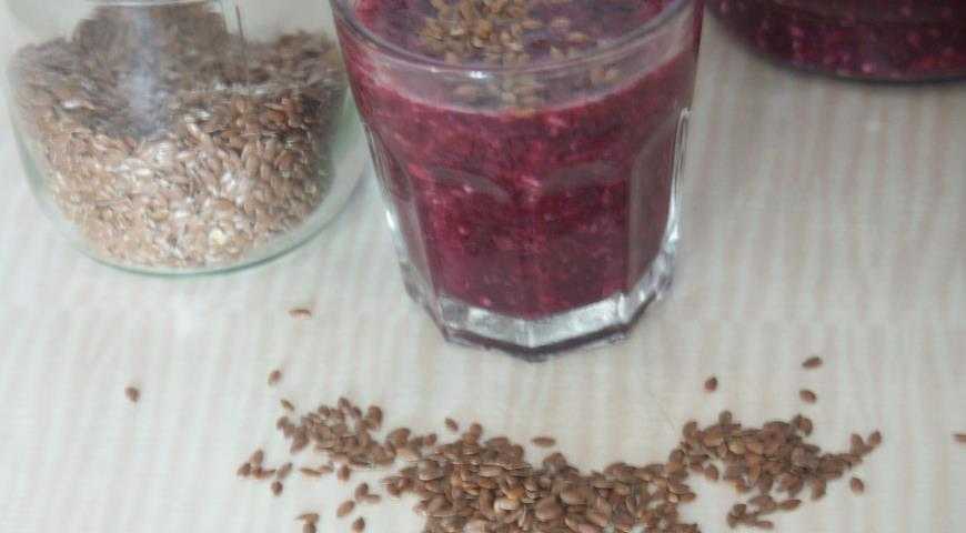 Шаг 1 Готовить начинаем вечером. В емкость где будет готовится кисель налить воды, высыпать льняные семена и ягоды. Шаг 2 Все тщательно перемешать и поставить на ночь накрыв крышкой или полотенцем. Шаг 3 Утром готовим кисель — опускаем погружённой блендер и все тщательно взбиваем. Консистенция получится именно киселя, если останутся кусочки семян не страшно они очень мягкие и вкусные. Полезный совет