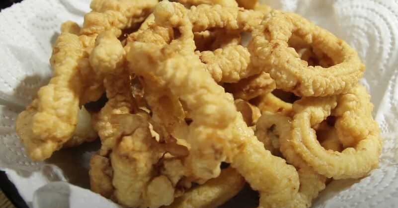 С варёных морепродуктов снять кожицу и после остывания нарезать кольцами. Приготовить кляр из муки и яиц с добавлением соли и перца. Хорошо их обмакнуть в жидкости и обсыпать панировочными сухарями, после этого жарить в глубокой сковороде или фритюрнице с большим количеством растительного масла.