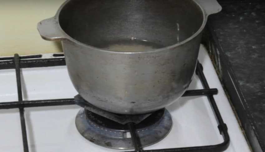 - Сковороду нагреть. Она должна быть полностью сухая. Насыпать муку. Прокалить до желтоватого цвета. Остудить.