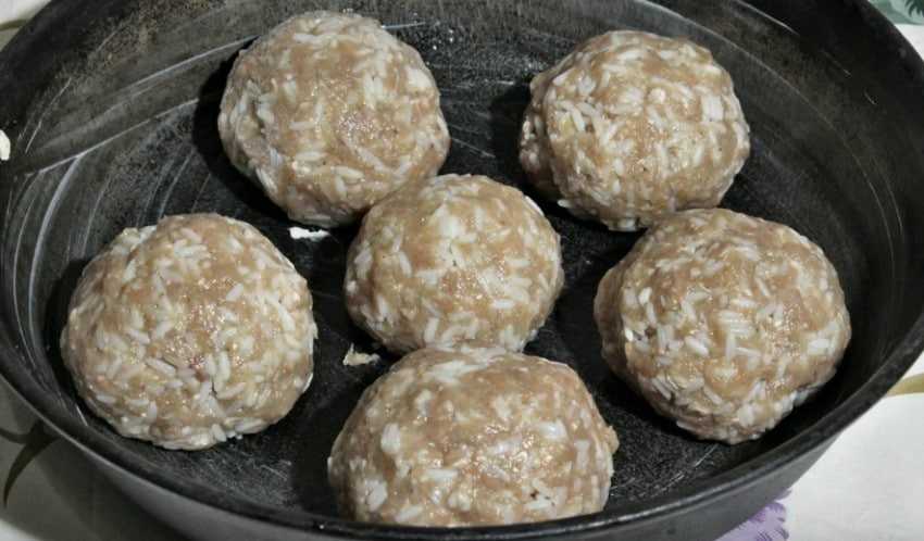 - Из смеси для тефтелей скатать шарики. Зажарить со всех сторон.