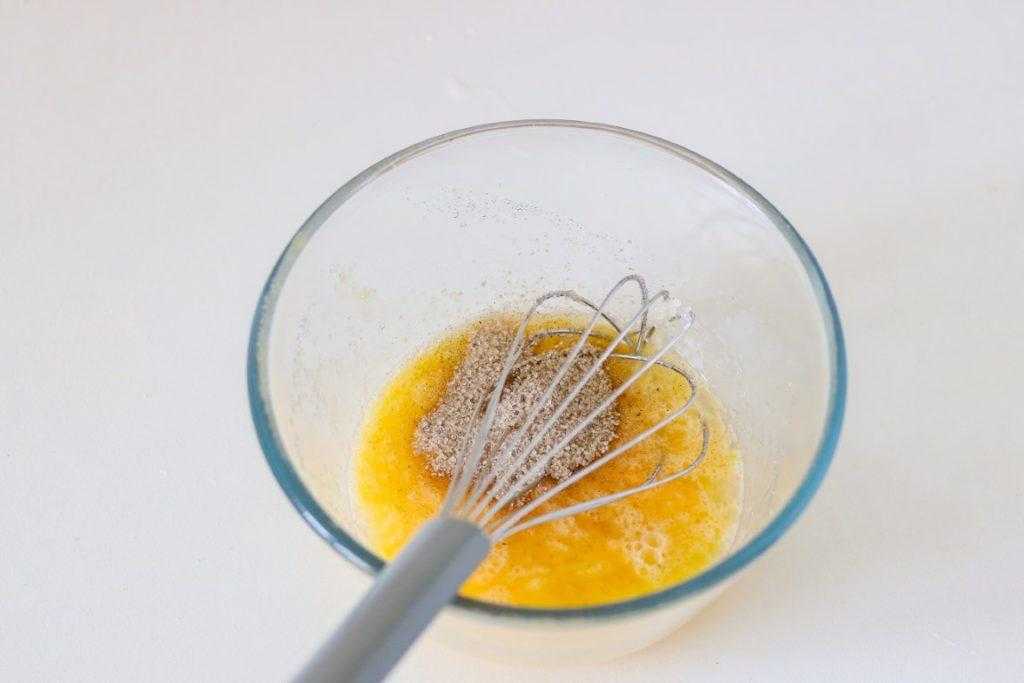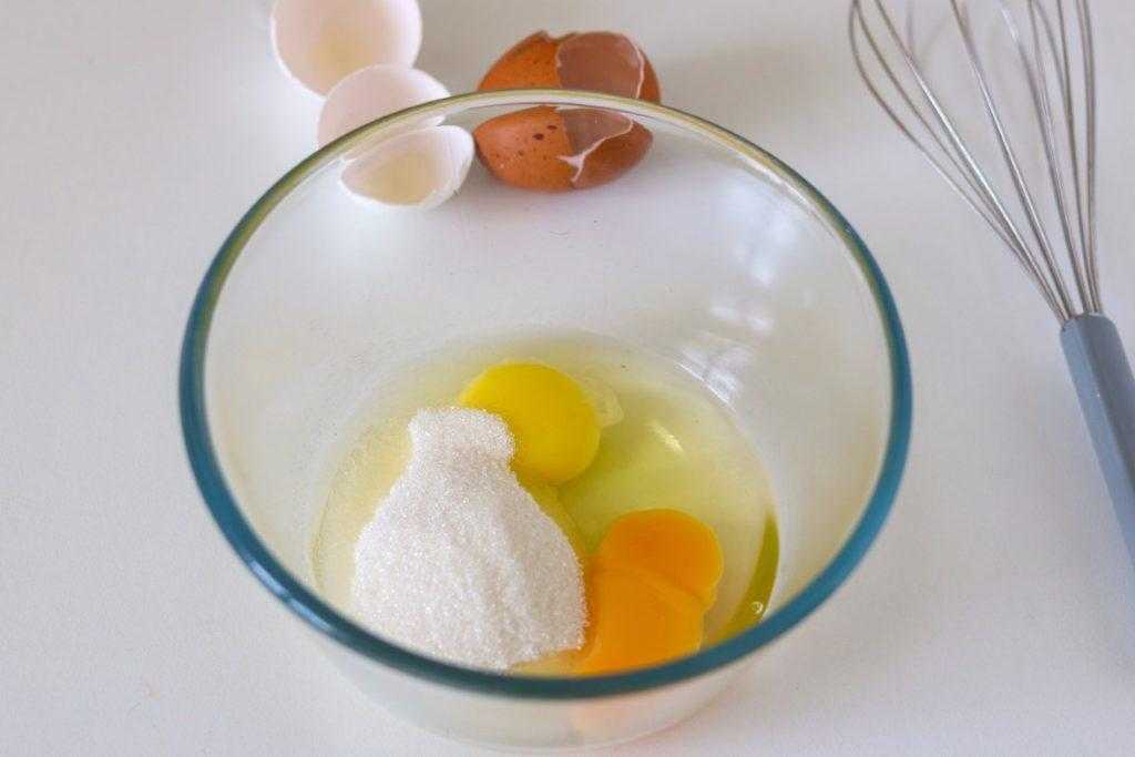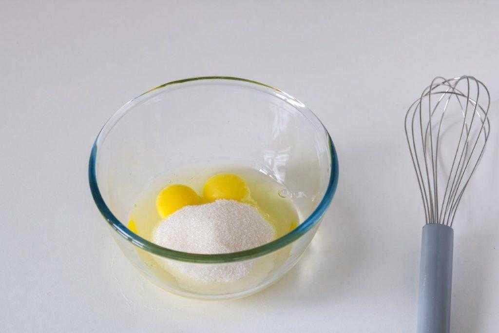 4. Соедините яйца с сахаром, перемешайте до растворения кристаллов.