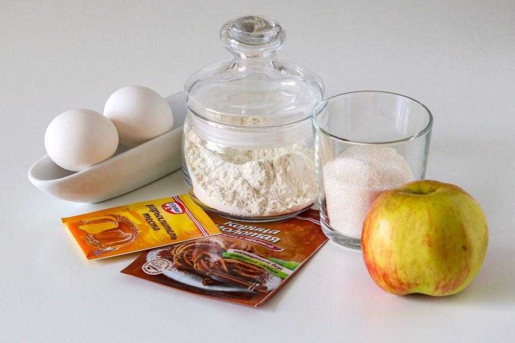 Для начинки: творог – 350 грамм; яблоки – 800 грамм; корица молотая – 2 ч. л.; сахарный песок – 70 г; сахар ванильный – 20 г; яйца – 2 шт..