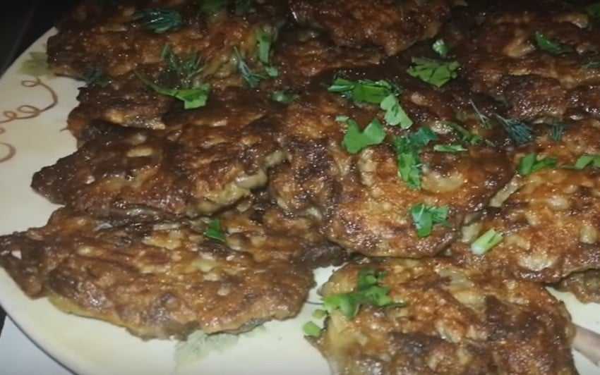 - В сковороду необходимо налить небольшое количество растительного масла, после чего – обжарить на нем получившиеся заготовки. Сначала требуется зарумянить оладьи, после чего – закрыть емкость крышкой, убавить огонь и томить их уже до полной готовности. Если фарш был хорошо прожарен, достаточно дождаться хрустящей корочки на угощении.