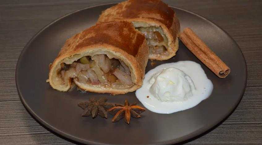Штрудель с яблоками из бездрожжевого слоеного теста