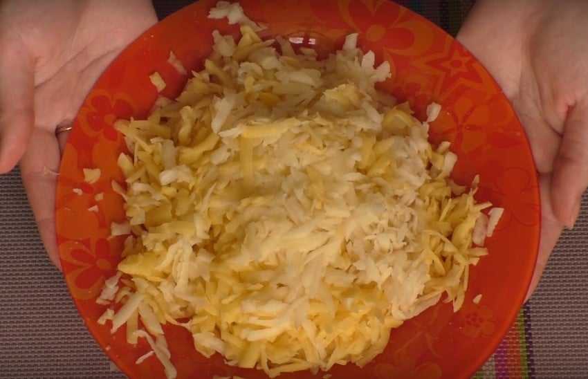 - Сыр натереть на средней терке, предварительно смазанной растительным маслом. Это поможет избежать прилипания сырной стружки к терке во время процесса натирания.