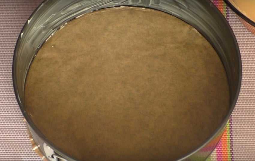 - На столе, притрушенном мукой, вымесить тесто, разделить его на большую и маленькую часть. Раскатать в пласт, положить большой блин в круглую силиконовую форму, формируя бортики.