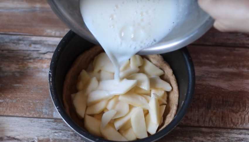 Это не просто обычная шарлотка или пирог с яблоками. Теста тут минимум, зато начинки и заливки довольно много. Отличительной чертой рецепта, помимо творога, является обжаривание яблок перед выпеканием. На слабом огне с добавлением сахара и сливочного масла нужно довести их до более мягкого состояния – они слегка карамелизируется, что сделает вкус готового десерта еще более интересным.