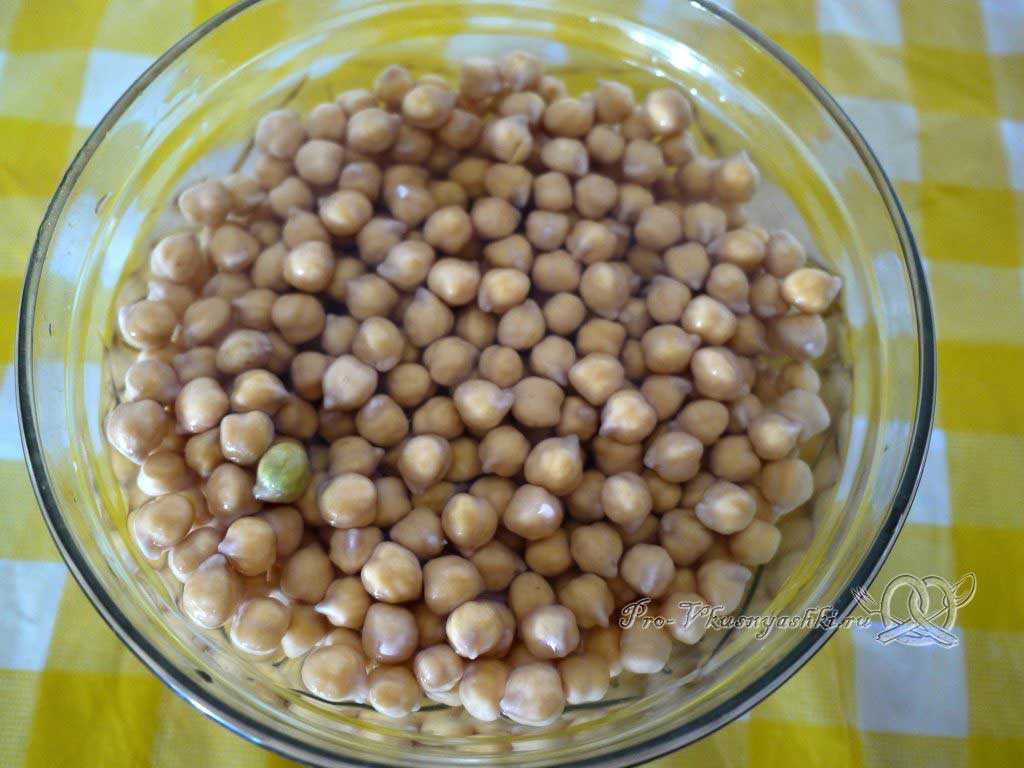 Для начала необходимо подготовить нут – взять нужное количество гороха, залить его чистой водой и оставить на 6-8 часов в покое.