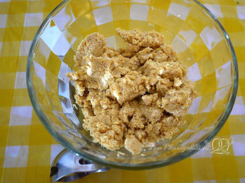 Слейте воду с орехов и отправьте их в блендер. Измельчите до состояния крошки.