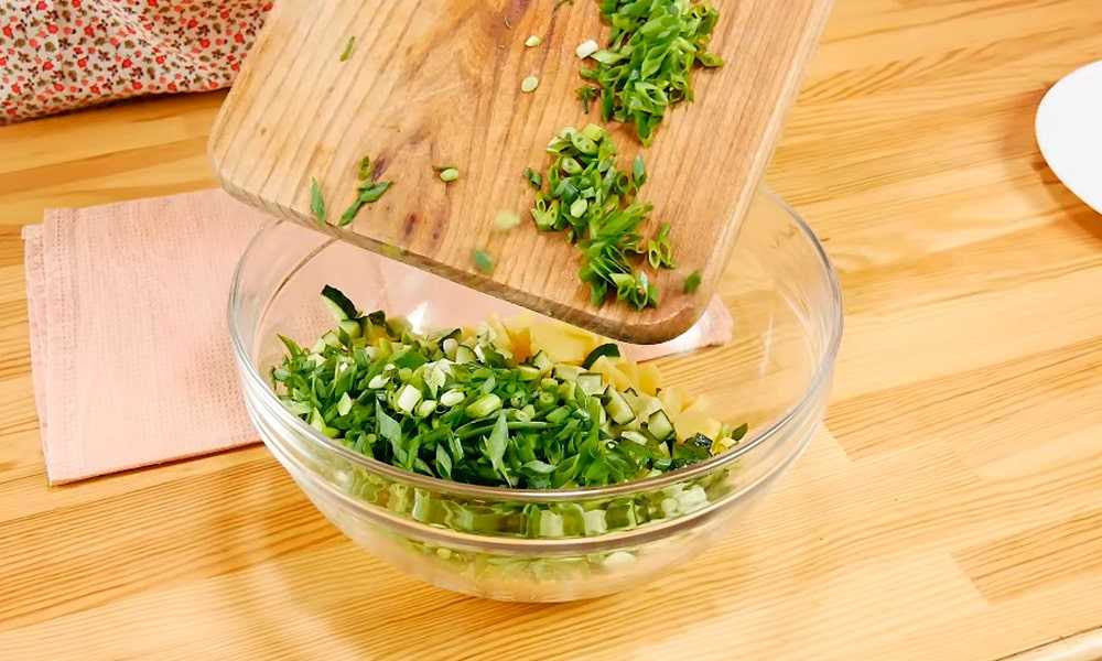 - Зелень ополаскиваем, обсушиваем, измельчаем ножницами.