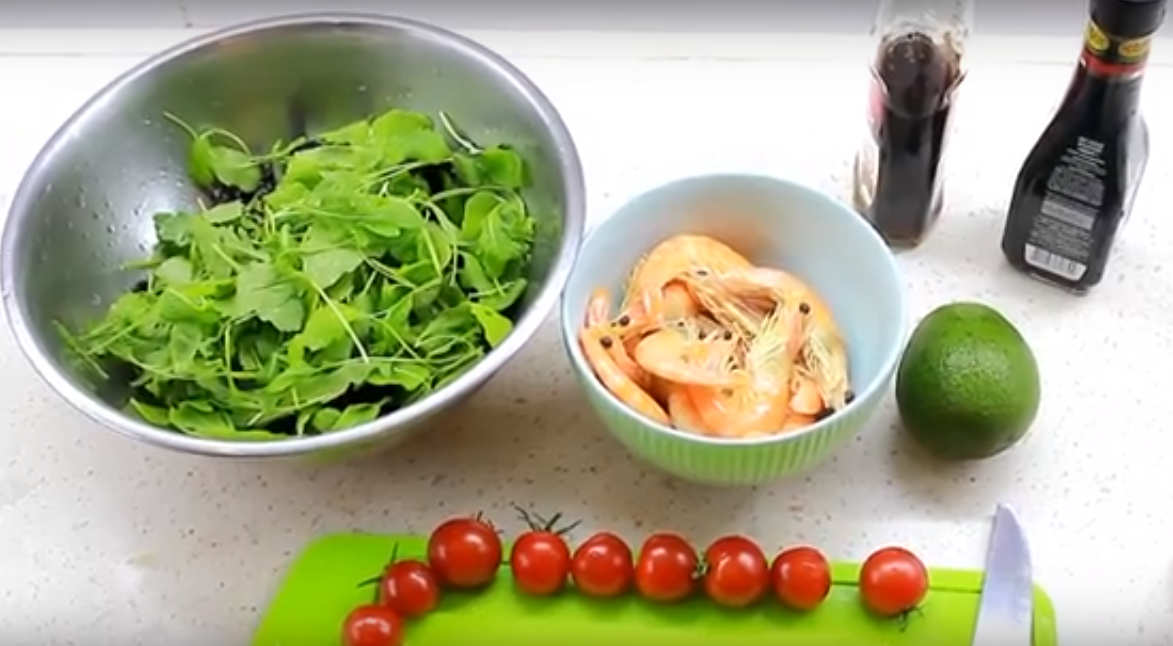 Рассмотрим следующий рецепт несложного приготовления. Салат довольно легких, поэтому борцы за фигуру это для Вас. Все ингредиенты малокалорийны, да ещё и очень полезны. К примеру только одни креветки богаты белком, что просто необходимо для нашего организма. Ну и авокадо не отстает. Этот фрукт считается самым питательным в мире среди остальных. Так сказать одни плюсы.
