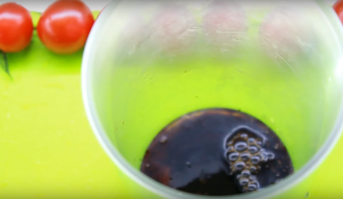 7. Займемся приготовлением соуса. Наливаем в чашу 30 мл бальзамического соуса со специями, добавляем соевый соус 25 мл, выдавливаем дольку лайма.