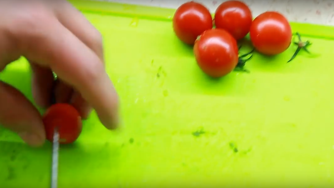 1. Приготовление салата будем начинать со свежих помидор. Промойте их под проточенной водой. После нарезаем на кубики среднего размера.