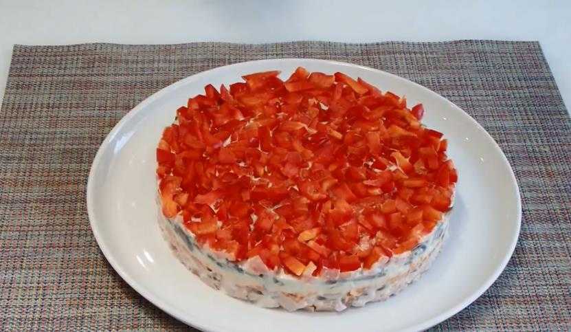 - Отправить примерно на 15-20 минут салат в холодильник, чтобы все слои пропитались как следует.