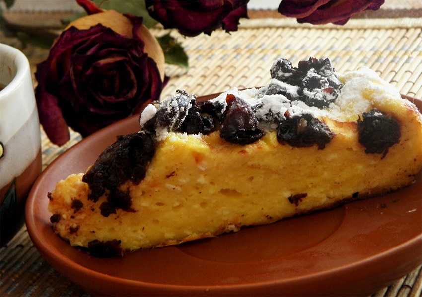 - В процессе готовки творожное тесто поднимется, но после осядет. Если изделие начнет подгорать, накройте его фольгой.