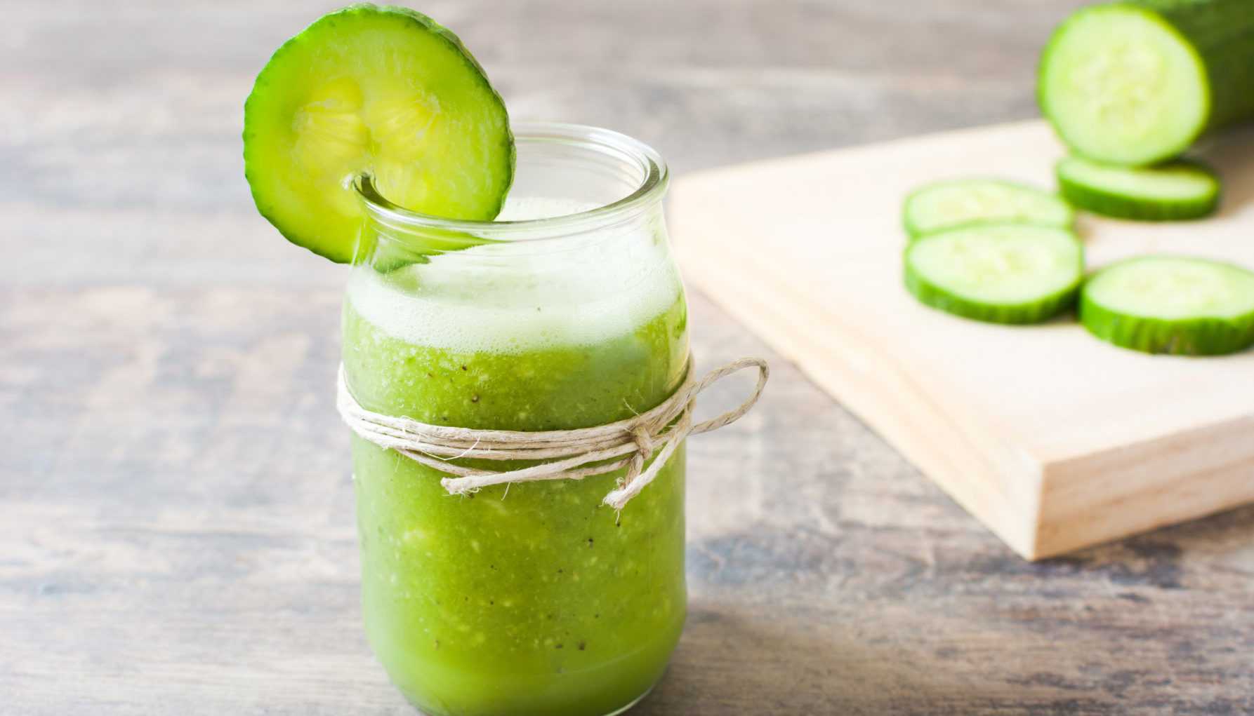 Этот напиток действует, как мягкое очищающее средство, обладает освежающим вкусом. Ананас способствует похудению, огурец и киви выводят из организма лишнюю влагу.