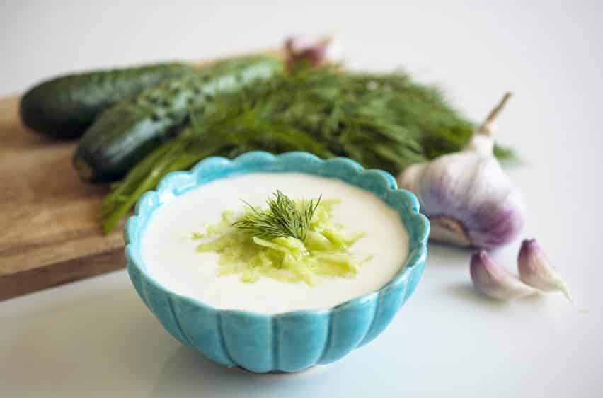 - Но еще вкуснее он станет, если дать ему настояться 15-30 минут в холодильнике — за это время вкус чеснока и укропа лучше раскроется, а значит, и сметанный соус станет более насыщенным.