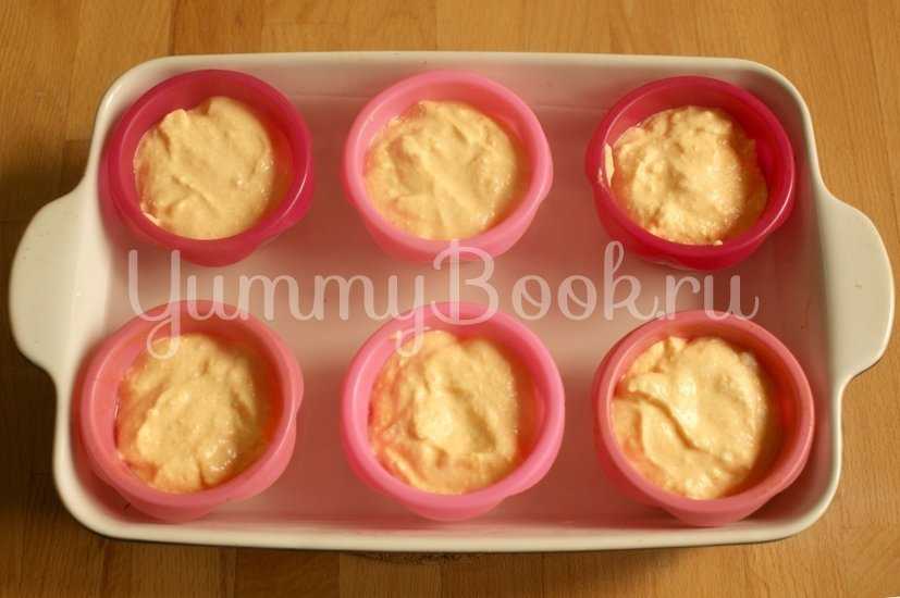 8. Разложить массу по формочкам, заполняя их на 2/3. Если у вас формочки силиконовые, то их смазывать не надо. Формочки из других материалов смазать сливочным маслом. Формочки с тыквенно-творожной массой поставить в глубокую форму для запекания и наполнить её горячей водой так, чтоб её уровень был до половины маленьких формочек. Выпекать в заранее разогретой духовке при температуре 180 градусов 20-25 минут. Затем духовку выключить и оставить суфле остывать в духовке с приоткрытой дверцей до тёппого состояния.