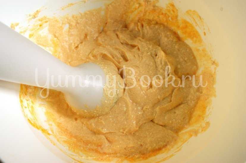 Когда наша тыковка остыла, взбиваем и ее, а потом осторожно вмешиваем туда же пену из яиц и сахара.