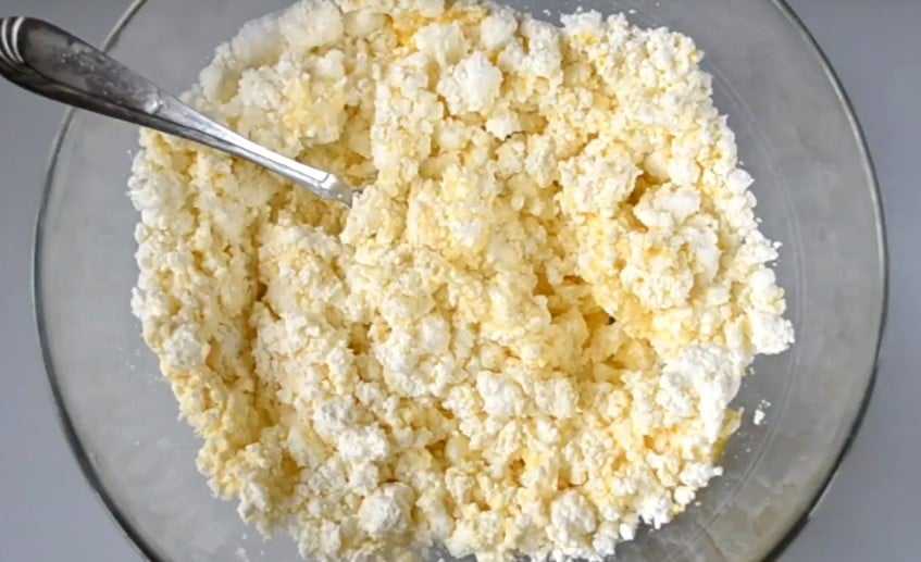 - Подготавливаем творог, добиваясь получения однородной массы без комочков.