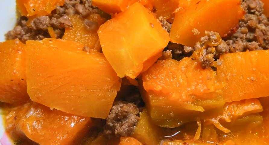 Если времени для приготовления основного блюда почти нет, следует обратить внимание на это оригинальное кулинарное решение. Запеченная мякоть тыквы прекрасно сочетается с мясным фаршем, становясь нежнее и сытнее