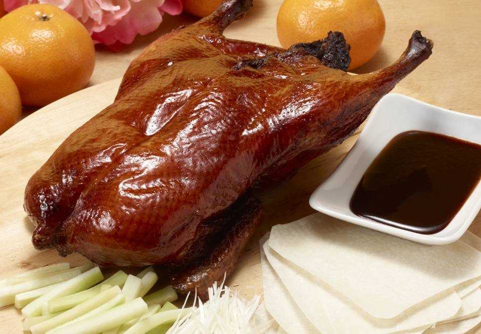Домашняя утка, запеченная по-пекински, с медом и имбирем