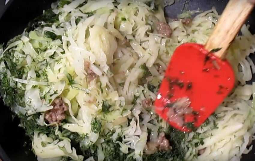 7. Капусту смешайте с мясом и луком, попробуйте на вкус, при необходимости посолите.