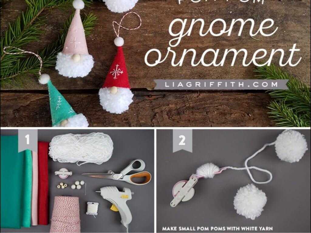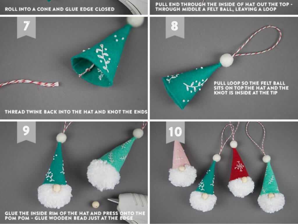 Пришиваем нос-бусину, через верх колпачка и бусину продеваем нитку, пришиваем помпон. Гном для декора готов.