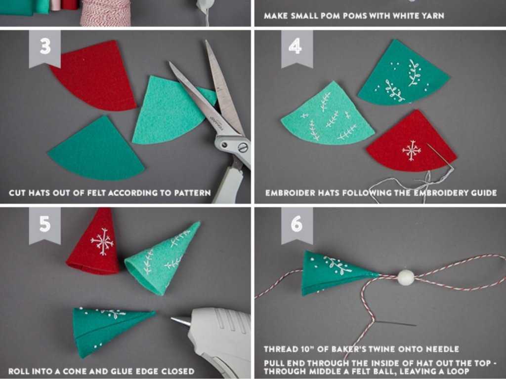 Шапочку вырезаем из фетра, делаем вышивку и склеиваем по боковой стороне.