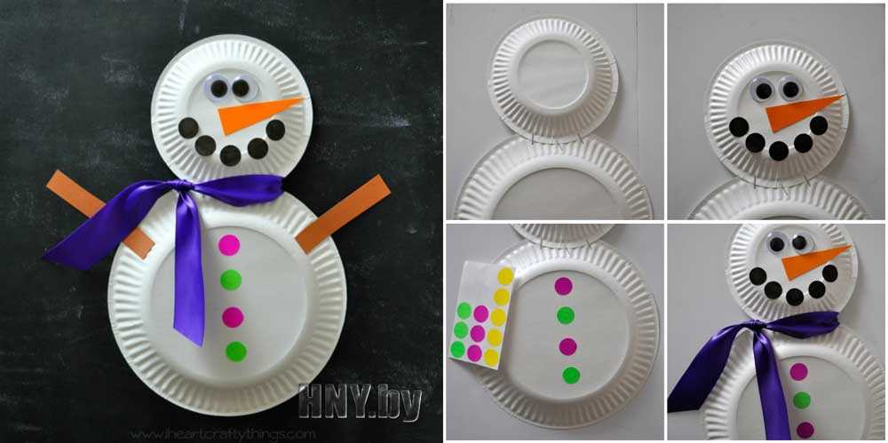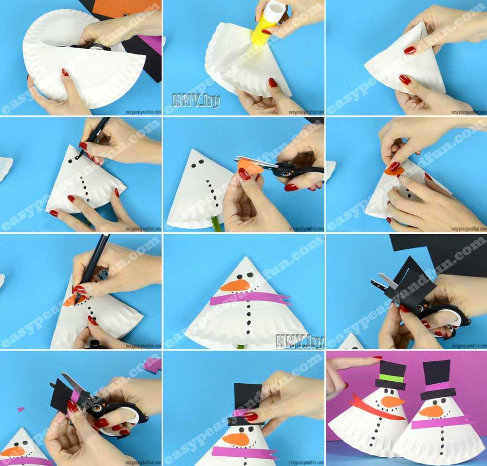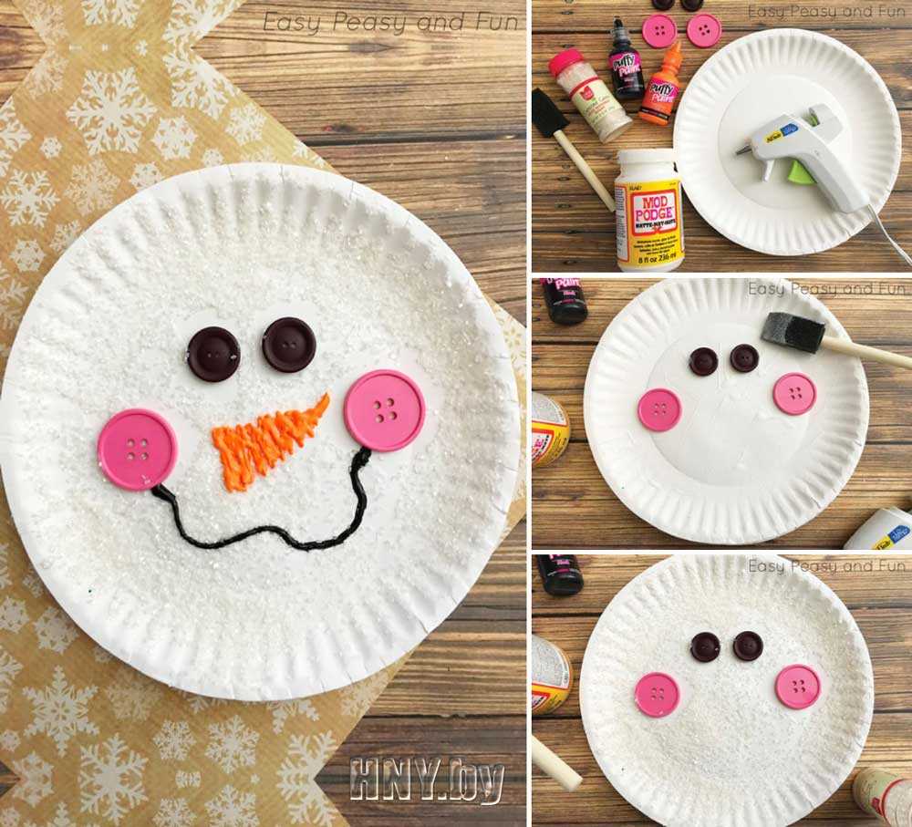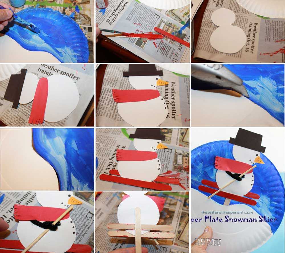Крутые поделки можно сделать из обычных бумажных тарелок. Пошаговый мастер-класс по изготовлению снеговика-лыжника Вы найдете ниже. Поделка понравится и малышам, и деткам по-старше.