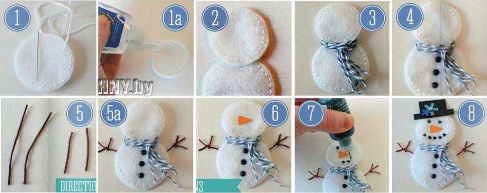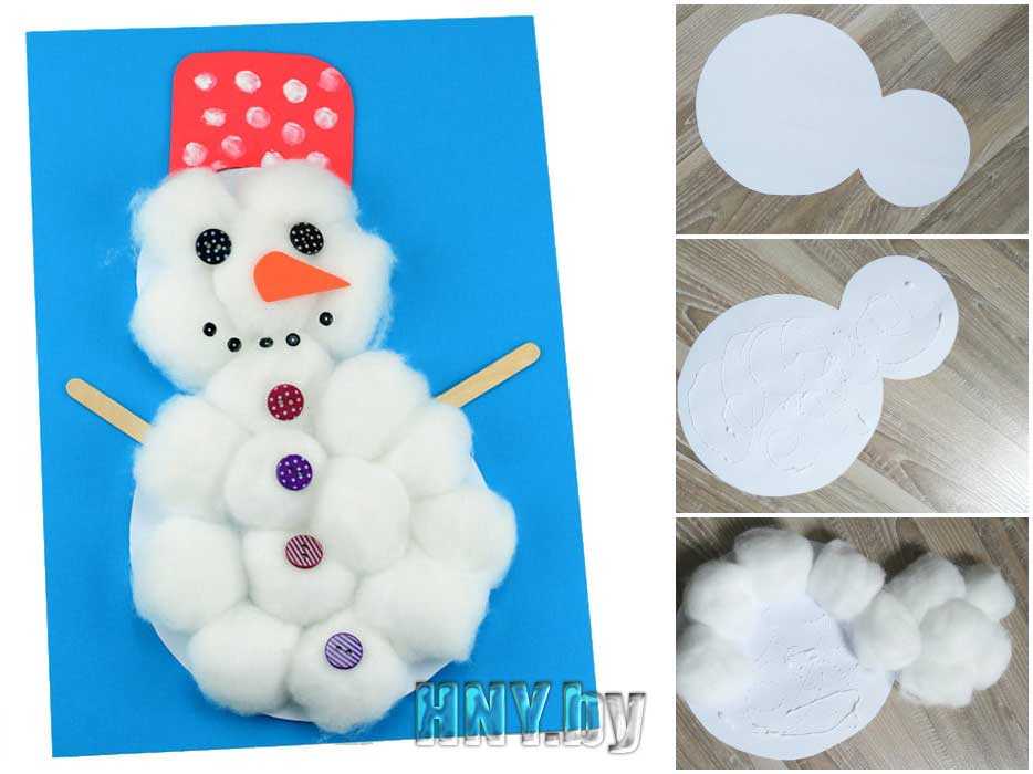 Сложно найти женщину или девушку, у которой не было бы ватных дисков. А из них получаются замечательные новогодние поделки, особенно если речь идет о снеговиках. Ватный диск уже изначально имеет правильную круглую форму, поэтому не нужно даде ничего вырезать.