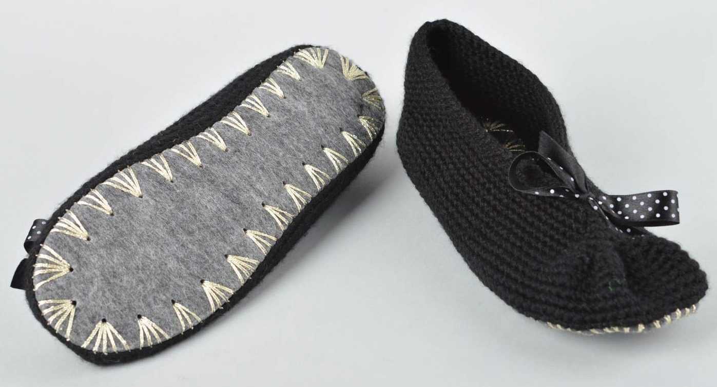 Таким же образом обвязываю и соединяю детали второго тапочка.