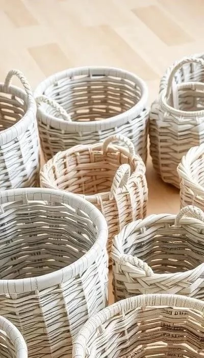 1. Газетные корзины: Практичное и стильное решение для хранения мелочей. Плетение из газетных трубочек требует терпения, но результат стоит того. Мастер-класс: подробная инструкция по созданию прочной и красивой корзины.
