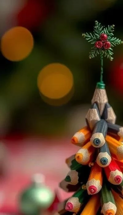 Рамка для фотографий, украшенная карандашами: обклейте готовую рамку карандашами, создавая оригинальный дизайн. Плюс: простота, минус: может выглядеть слишком простовато. Новогодняя елка из карандашей: склейте карандаши в форме конуса, украсьте бусинами и блестками. Плюс: праздничное настроение, минус: требует много карандашей.