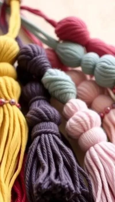 Кисточки из пряжи: Более объемные и фактурные, чем кисточки из ниток. Средняя стоимость материалов, умеренное время изготовления. Подходят для декора подушек, пледов и мебели. Требуют базовых навыков вязания.