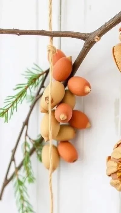 Проденьте нитку через отверстия в орехах и чередуйте их с бусинами. Завяжите узелки между орехами и бусинами, чтобы они не скользили. Гирлянда готова!
