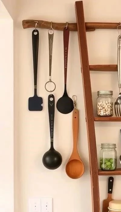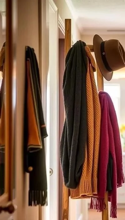 Превратите старую лестницу в стильную вешалку! Это один из самых простых и эффектных способов вторичного использования лестницы. Лестницу можно установить как вертикально, так и горизонтально, в зависимости от вашего интерьера и предпочтений. Вертикальная установка идеально подходит для узких прихожих, а горизонтальная – для просторных спален или гардеробных.