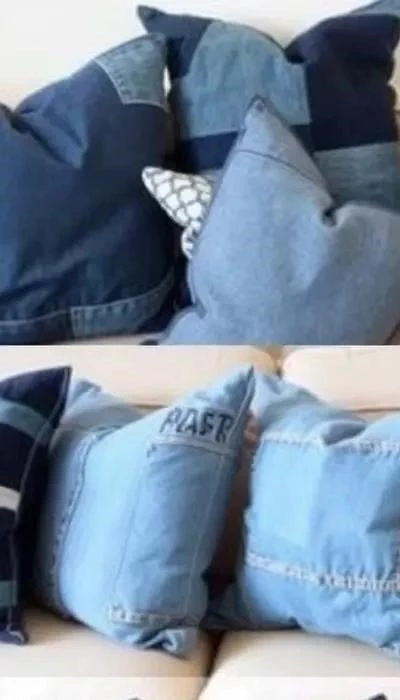 Подушки: Старые джинсовые куртки идеально подходят для создания стильных и практичных подушек. Используйте карманы как функциональные элементы, а швы – как декоративные. Можно комбинировать разные оттенки денима для создания интересных узоров. Наполнитель для подушек можно сделать из обрезков ткани от курток, что делает этот проект еще более экологичным.