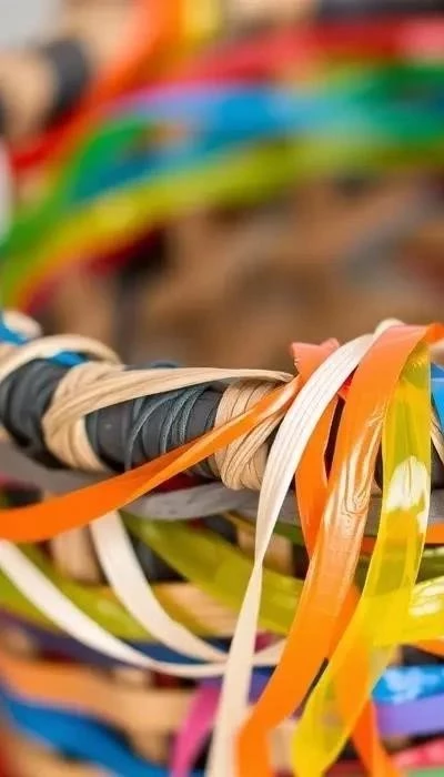 Ножницы – ваш основной инструмент для нарезки пакетов на ленты или полоски. Выбирайте острые ножницы для аккуратных срезов. Крючок (разных размеров) необходим для вязания ковриков, корзин и других объемных изделий из полиэтиленовых лент. Размер крючка подбирается в зависимости от толщины ленты. Спицы также могут использоваться для вязания, особенно если вы хотите создать более плотное и текстурное полотно. Дополнительно могут пригодиться линейка, карандаш, иголка с ниткой для сшивания деталей.