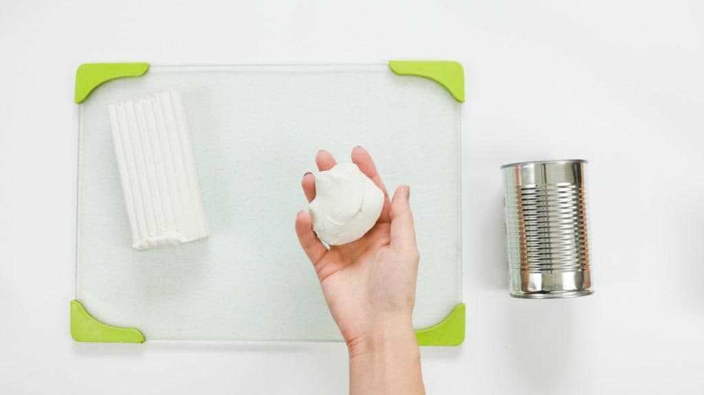 Необходимо взять кусок глины и хорошо его размять, а затем раскатать его и поделить на равные части.